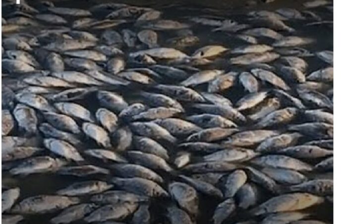 Officials suspect possible contamination and have advised the public to avoid consuming fish from the area until results are confirmed.